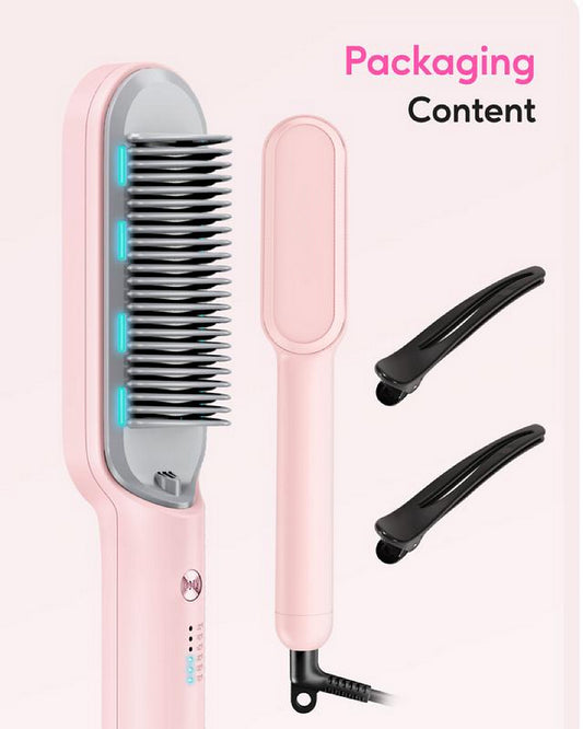 Hair Straightener Brush, Ring Hair Straightener Comb Straightening Brush for Women with 5 Temps 20s Fast Heating & Dual Voltage