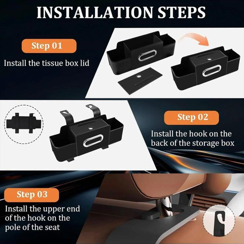 🚗 Car Organizers and Storage BoxUpgrade your car's organization with this multifunctional car seat back storage box. It features a tissue holder, 2 cup holders, and bags hooks. Perfect for keeping your back seat tidy and accessible.