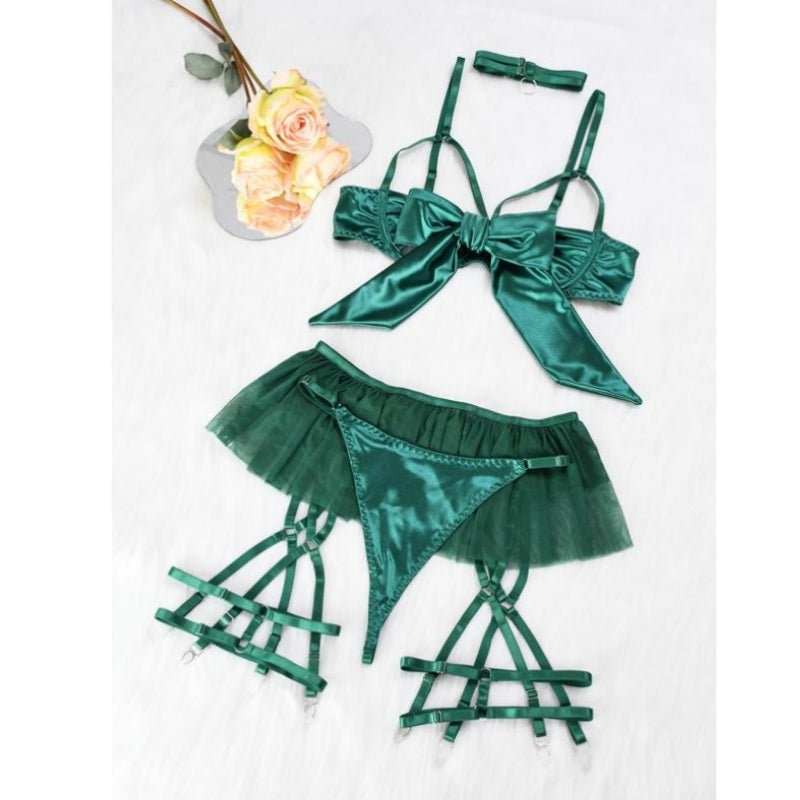 This lingerie set is made with smooth satin-finish fabric and lightweight sheer accents, chosen to rest gently against the skin.