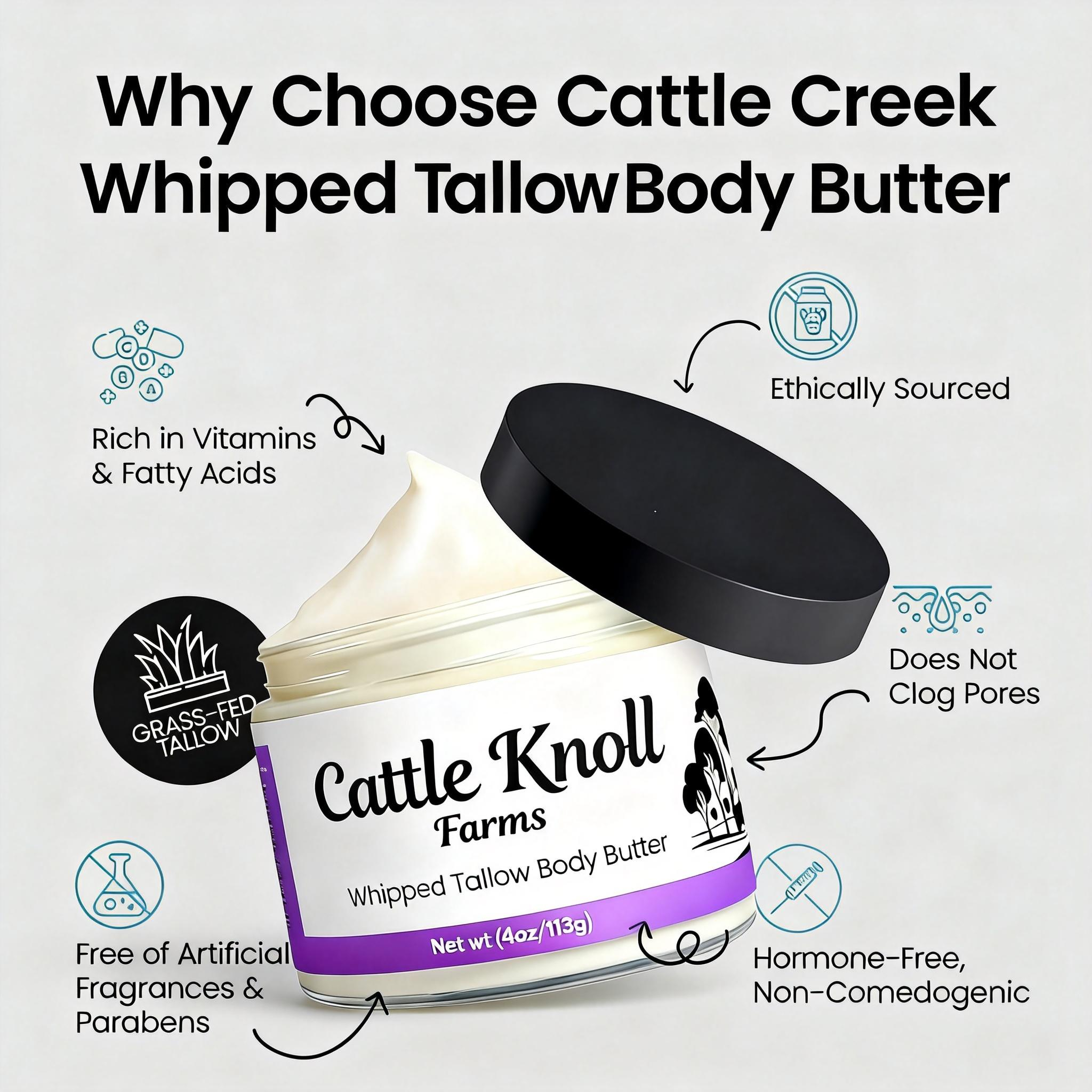 Whipped Tallow Body Butter by Cattle Creek - Deep Moisturizing, Skin Soothing & Repairing Cream Body Care Moisturizer